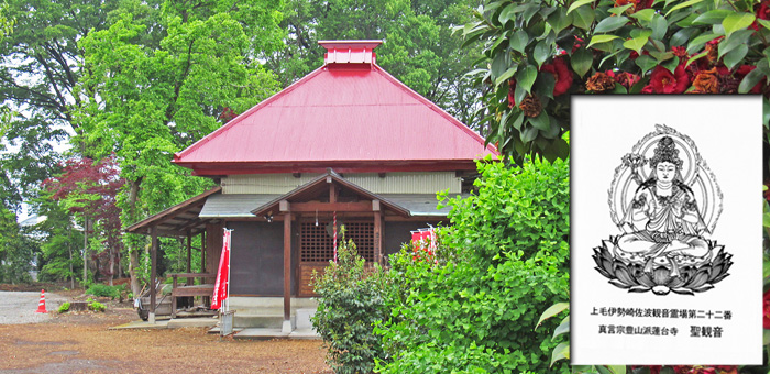 ◆伊勢崎市柴町にある11番・泉龍寺観音堂で如意輪観音を安置し、別名:厄除観音とも称する。北側には12番、南側には10番が点在する。右側は、22番・蓮台寺の御姿。 |