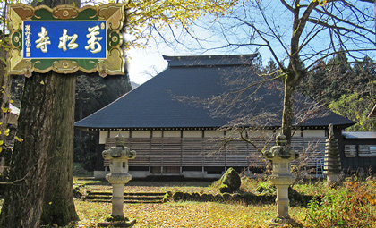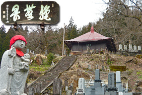 萬松寺と寺名の扁額、北西側には三国川が流れる <千手観世音> |