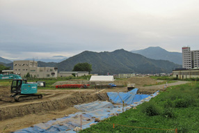| 境内の南側には発掘中の金谷遺跡群がある |