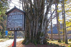 | 境内の大カツラの木は県の文化財指定 |