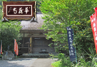 華蔵寺と寺名の扁額、珍しい "狐の剃刀"の花が咲く |