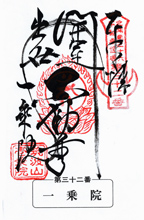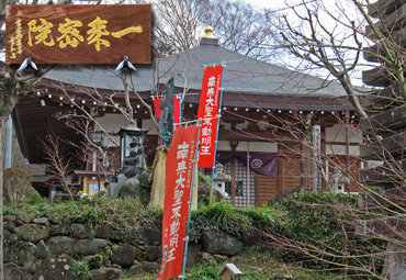 一乗院と "一乗密院"の扁額、不動明王の幡が立つ |